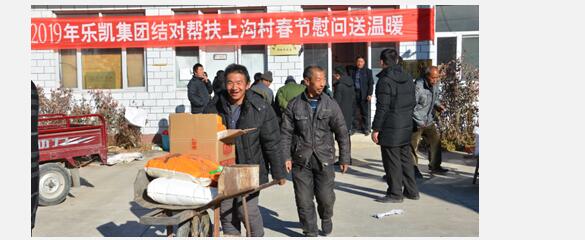 1月25日,新春佳節(jié)到來之際,中國樂凱集團(tuán)扶貧辦組織集團(tuán)公司定點(diǎn)扶貧淶源縣成員單位到淶源縣開展春節(jié)前慰問活動,給上溝村、五節(jié)崖村村民送上生活用品和節(jié)日的祝福。集團(tuán)公司、樂凱集團(tuán)、五院、航天投控相關(guān)領(lǐng)導(dǎo)參加了慰問活動。